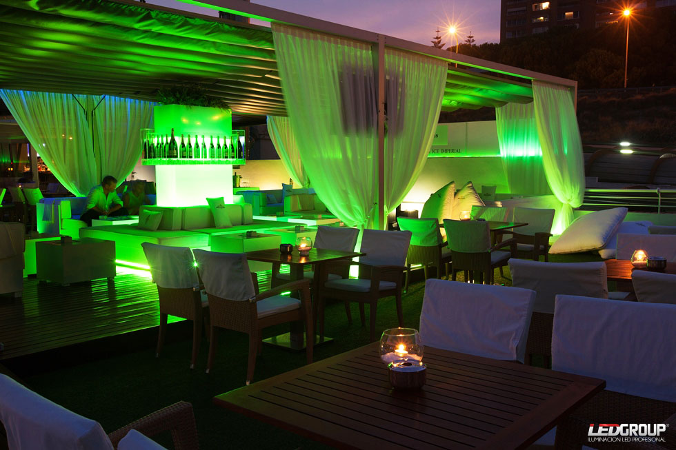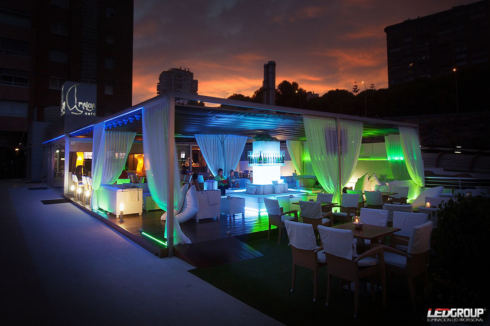 Iluminación decorativa en terraza mediante sistemas led RGB.